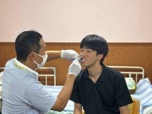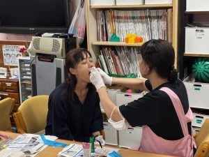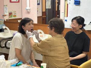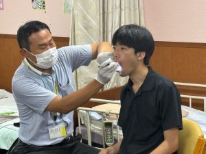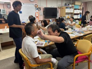 実際に利用者役と介助者役に分かれて、ブラッシングと粘膜清掃の基本的な技術を確認しました!!