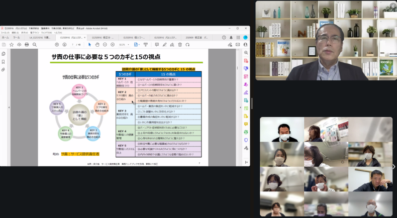 前回研修に引き続き、株式会社グット・シェパード 馬袋秀男代表取締役をお招きし、サ責の多岐にわたる役割を再確認し、業務負担を軽減しながら、いかにケアの質と事業所の生産性を向上させるかについて、具体的な手法と心構えを学びました。
